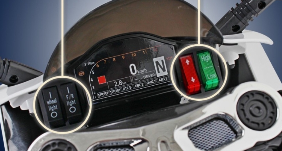 SX-1628 유아 전동 오토바이는 계기판에서 배터리 잔량을 확인할수 있어요.